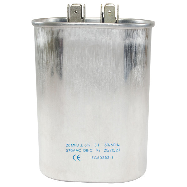 Appli Parts Run Capacitor for ac 20 Mfd uF (microfarads) 370VAC CBB65 Oval Universal fit for hvac and other applications in 2-3/4 in Wide 1-3/4 in Depth 4-1/4 in Height CON-20-370