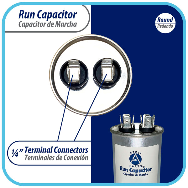 - Universal: Replaces any brand with the same capacitance capacity and voltage. Will work for 370V or 450V. 1/4 in Male Quick-connect
