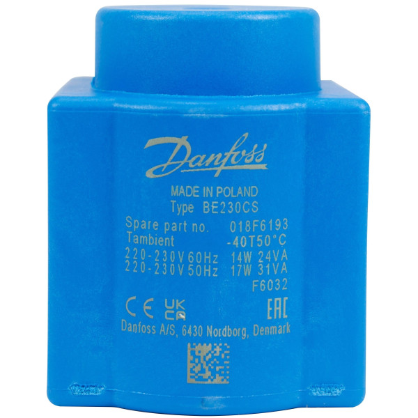 Danfoss 018F6732 Solenoid Coil 220-230 V, 60 Hz, 14 W, 50 Hz, 17 W, IP67, BE230CS, Terminal Box, works for for VDH and VDHT valves, Identical 018F8732, 018F7919