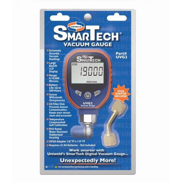 Uniweld UVG2 Smartech Digital Vacuum Gauge, Backlit Display. 0-19000 Micron Range Max Over pressure 400psi, UVGA adapter Included Requires 3 AA Batteries (not included)