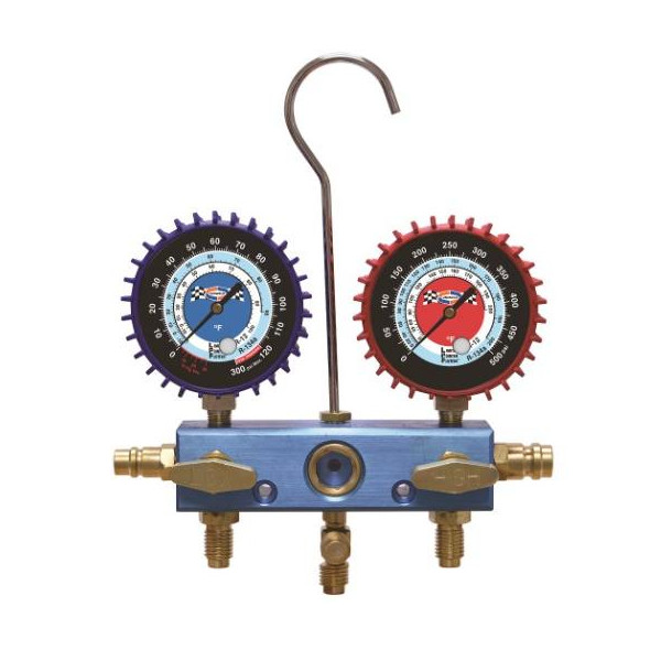 Uniweld 91652 Manifold Automotive R134a,R12, 2 Valves, 60in Soft Magic Hose, with Couplers 90478/90479, 3-1/8 in NPF Gauge NPF