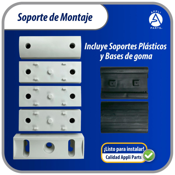 Incluye: Soportes, almohadillas de goma, tornillos, expansores, pernos, tuercas