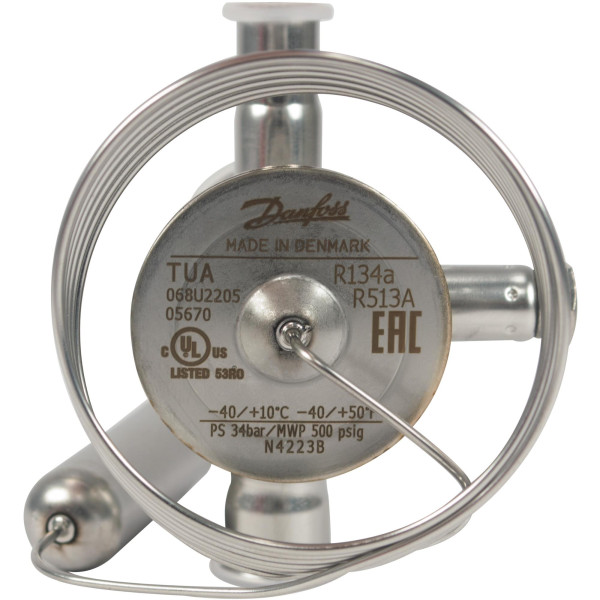 Danfoss 068U2205 1/8 - 2.5TR Cuerpo de Valvula de Expansion, TUA, R134a,R513A, 3/8x1/2pulg, Soldable, ODF, Ecualizacion Interna Single-flow, -40 to 50 F, Capacidad determinada por Orificio Venta Separada, Producto Identico 068U2205